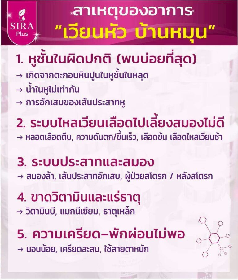 ทำให้ผู้ป่วยรู้สึกเหมือนตัวเองหรือสิ่งรอบข้างกำลังหมุน ทั้งที่ร่างกายอยู่นิ่ง