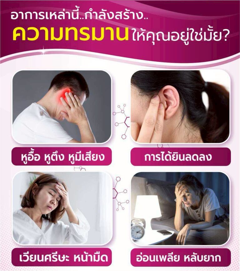 อาการเสียงวี้ด เสียงหึ่ง หรือเสียงซ่าในหู หูอื้อ ได้ยินไม่ชัด เวียนหัว บ้านหมุน หรือเดินไม่มั่นคง