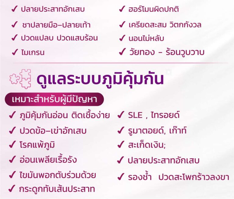 ซึ่งล้วนมีความเชื่อมโยงกับ” ความไม่สมดุลของระบบสำคัญในร่างกาย” ไม่ว่าจะเป็น